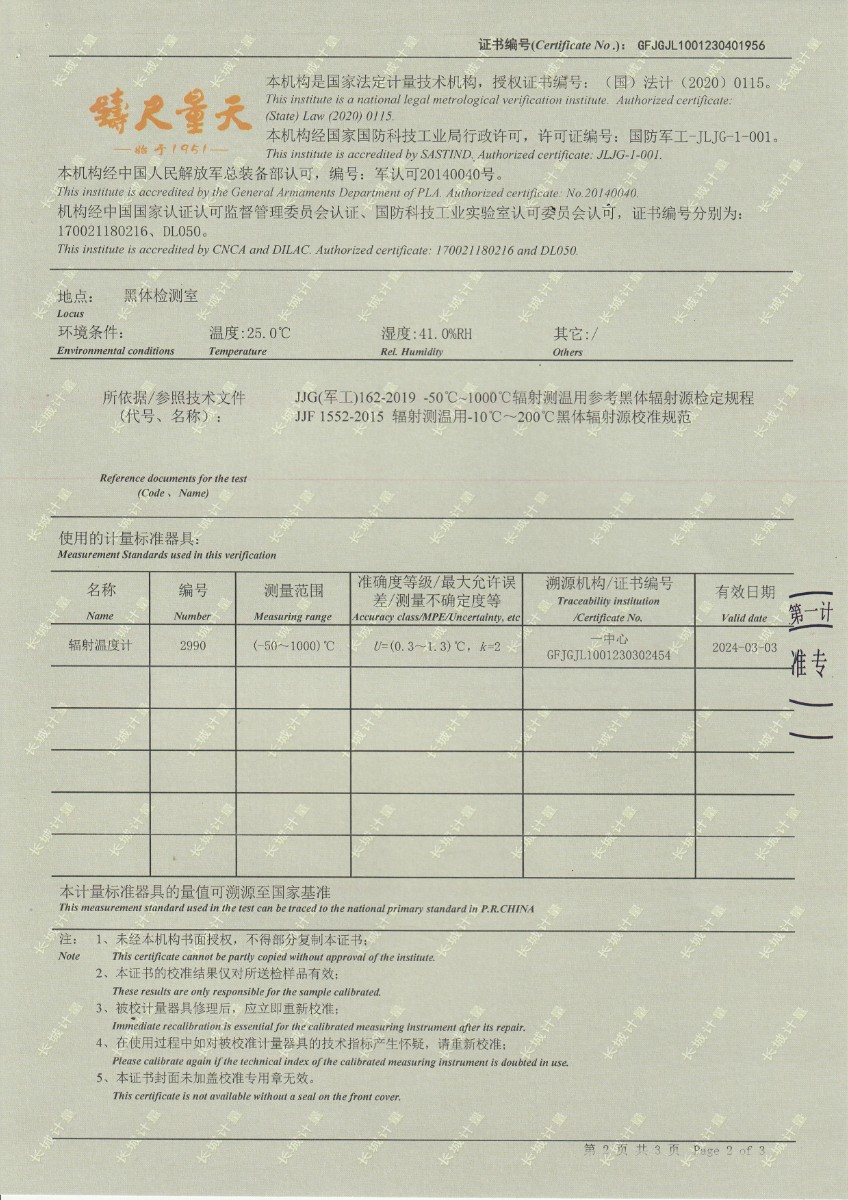 中航工程集成設(shè)備有限公司 面源黑體輻射源(分體式) 校準(zhǔn)證書 2023-5-4 本文被閱讀 13849 次