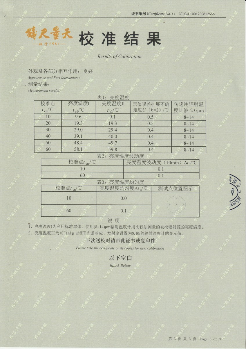 | 上一條:面源黑體爐DYHT1M141校準(zhǔn)證書 | 下一條:溫度數(shù)據(jù)采集儀校準(zhǔn)證書 |