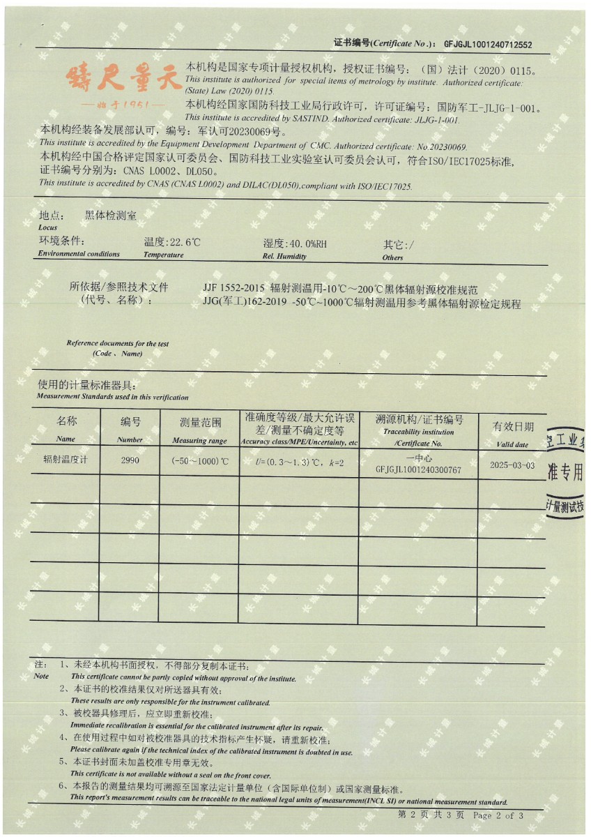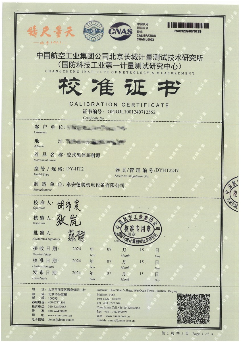 腔式黑體(50~500℃)校準(zhǔn)證書 2024-7-29 本文被閱讀 8288 次