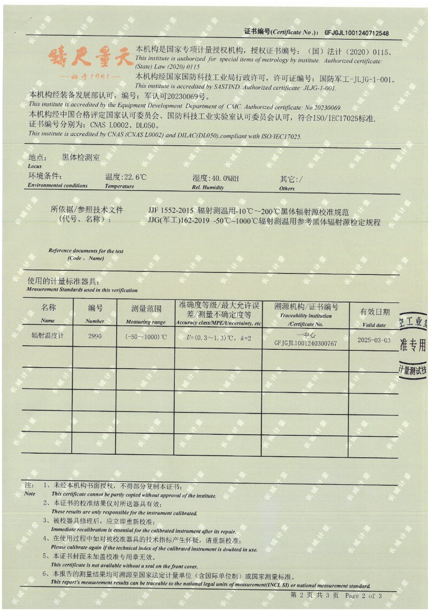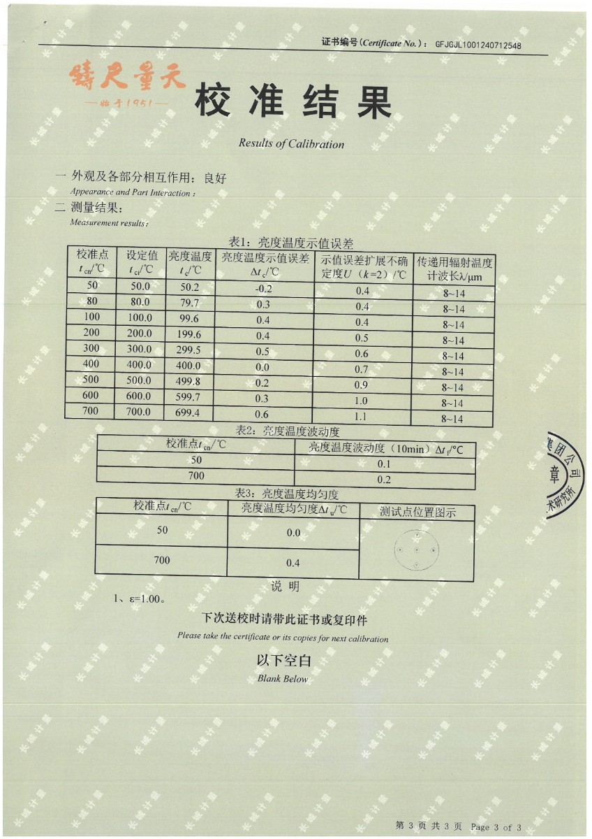 黑體(50~700℃)校準(zhǔn)證書 2024-7-29 本文被閱讀 10460 次