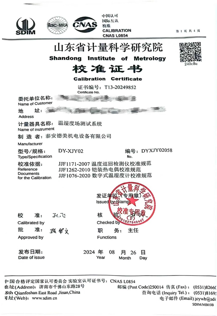 | 上一條:光柵式指示表檢定儀校準(zhǔn)證書 | 下一條:溫度數(shù)據(jù)采集儀校準(zhǔn)證書 |