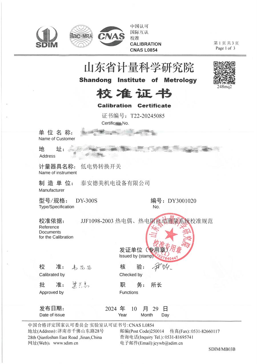 低電勢轉(zhuǎn)換開關校準證書 2024-10-31 本文被閱讀 7291 次