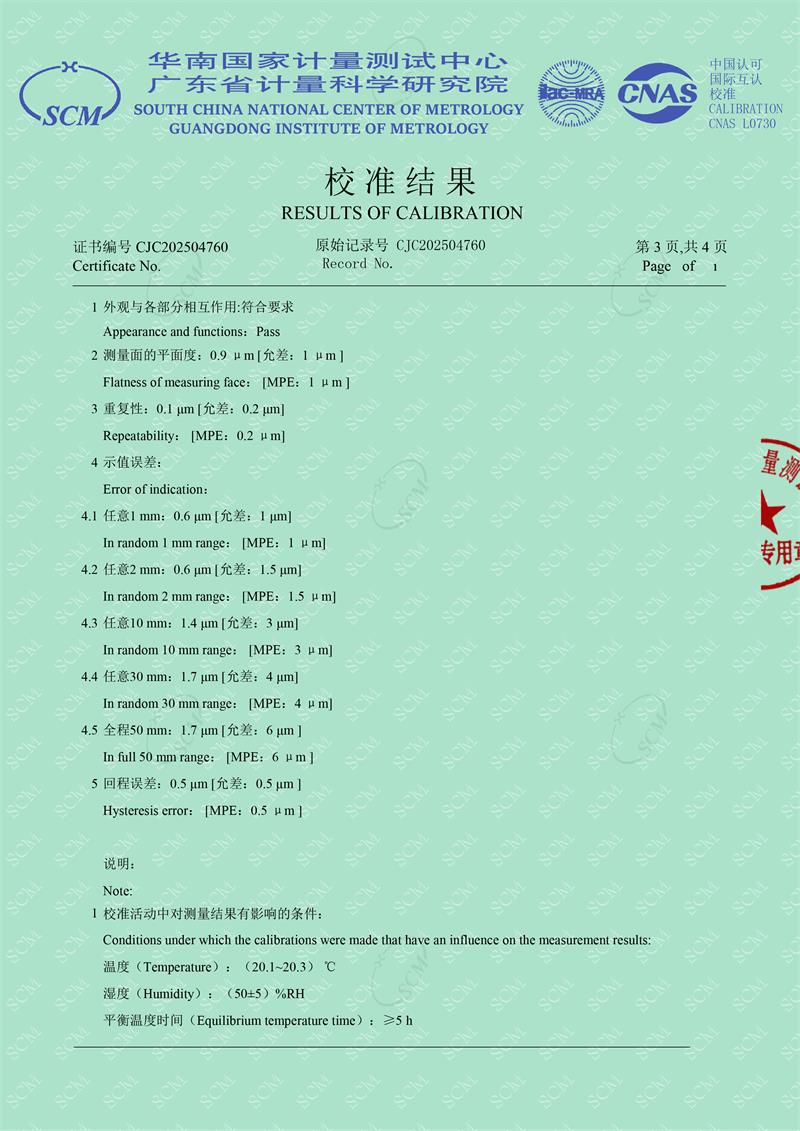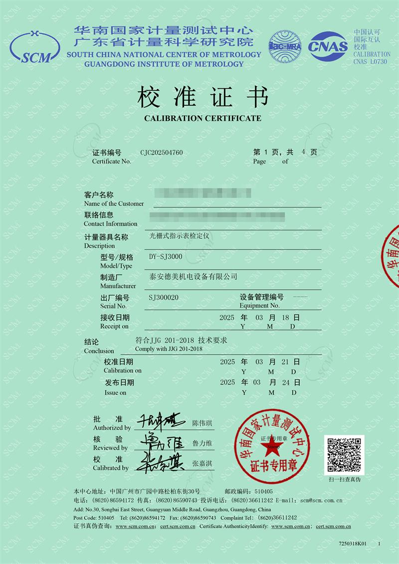 光柵式指示表檢定儀校準證書 2025-4-3 本文被閱讀 4282 次