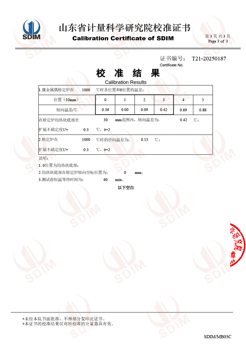 廉金屬熱電偶檢定爐(300-1200℃)校準(zhǔn)證書 2025-7-31 本文被閱讀 3134 次