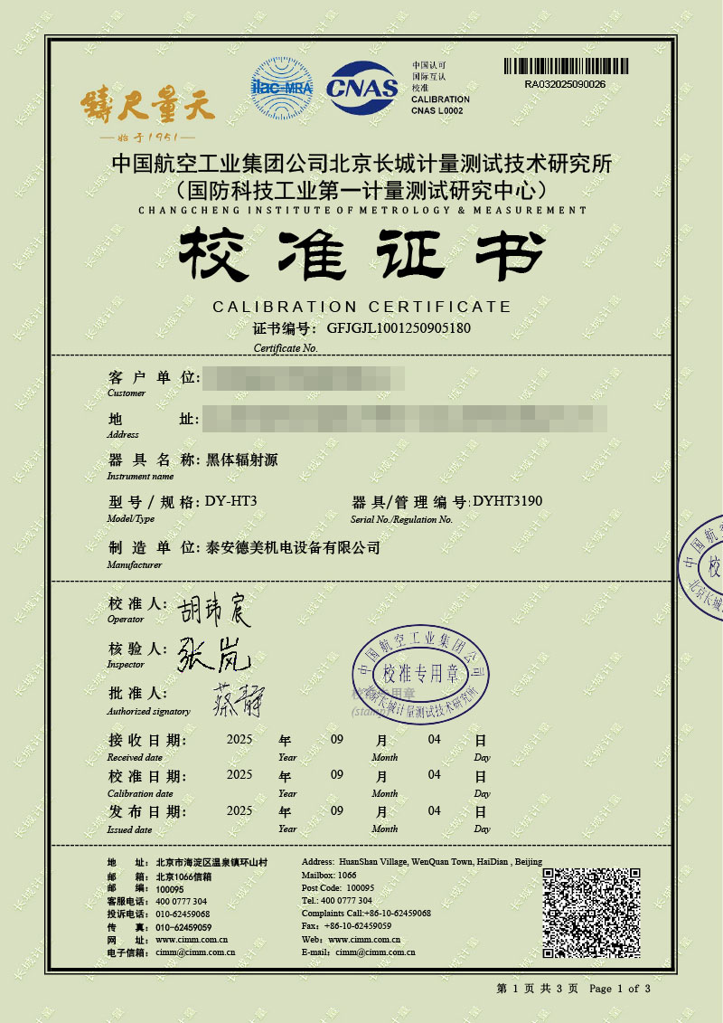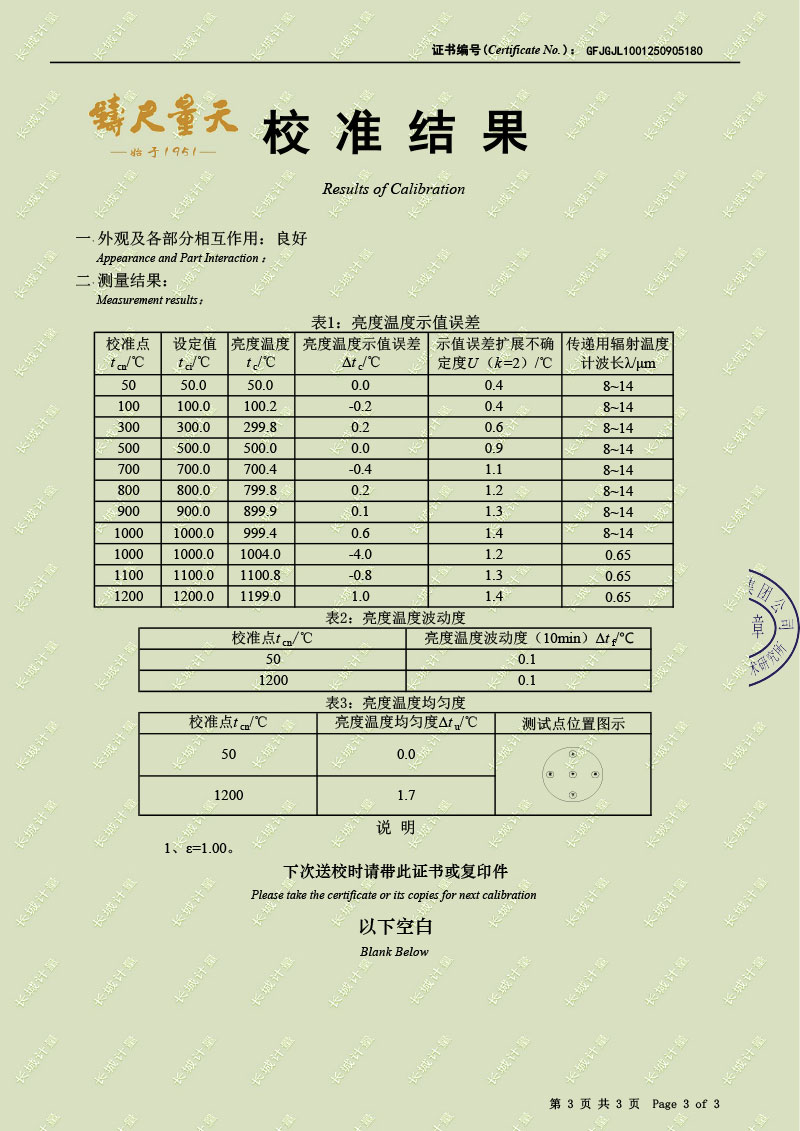 | 上一條:溫濕度檢定箱(-20-70℃)校準(zhǔn)證書 | 下一條:溫度數(shù)據(jù)采集儀校準(zhǔn)證書 |