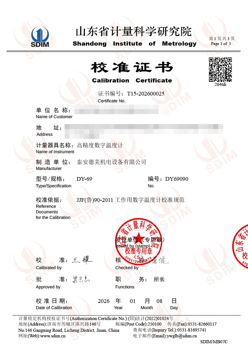 高精度數(shù)字溫度計校準證書 2026-1-13 本文被閱讀 24 次