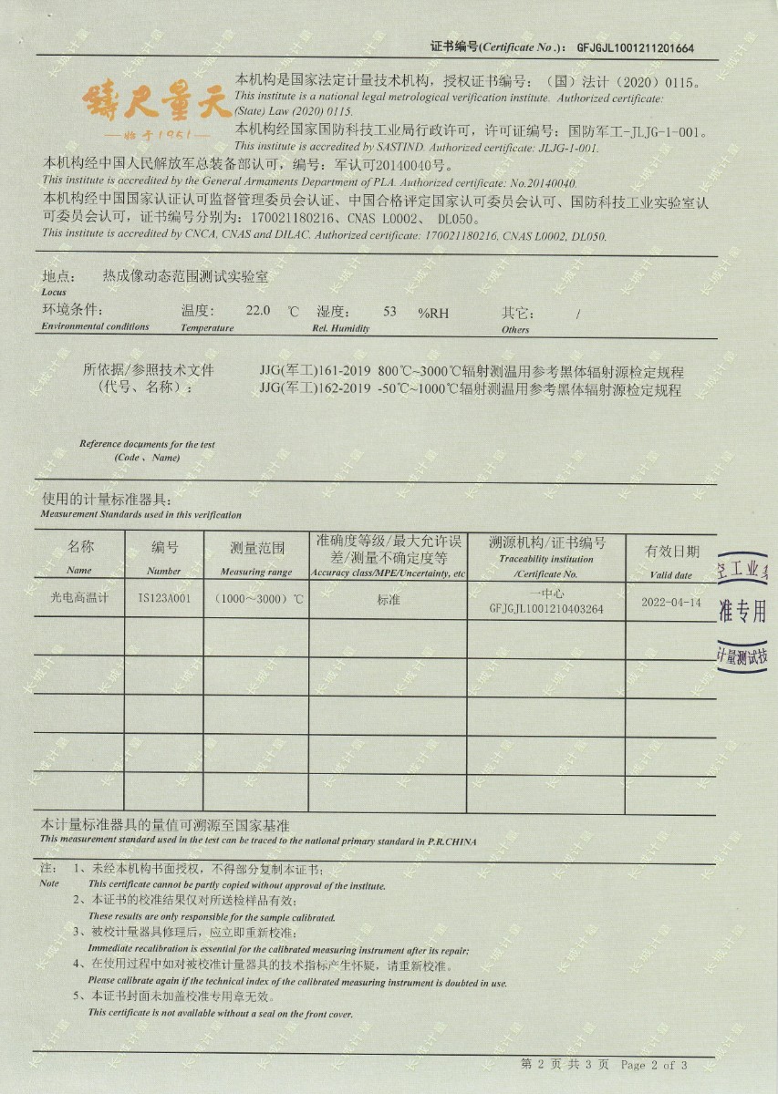 南京理工大學-黑體輻射源校準證書1050℃ 2021-12-4 本文被閱讀 14826 次