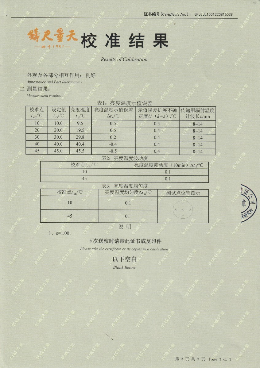 | 上一條:中國科學(xué)院長春光學(xué)精密機械與物理研究所-黑體爐DY-HT1-1 | 下一條:溫度數(shù)據(jù)采集儀校準(zhǔn)證書 |