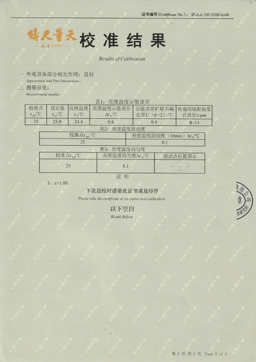 | 上一條:中國科學(xué)院長春光學(xué)精密機(jī)械與物理研究所-黑體爐DY-HT1-2 | 下一條:溫度數(shù)據(jù)采集儀校準(zhǔn)證書 |
