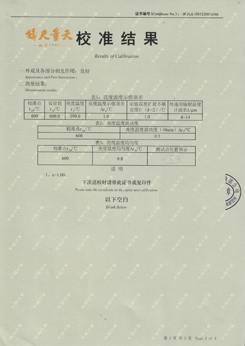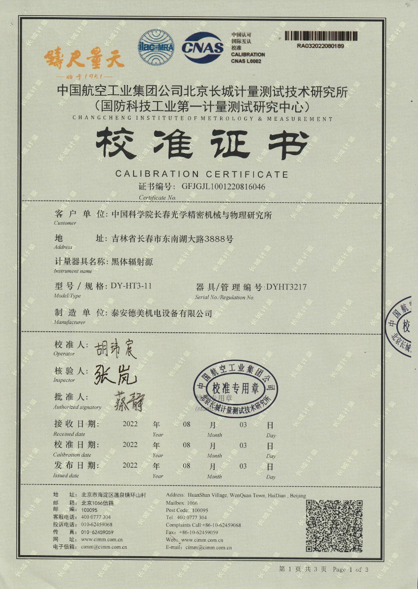 | 上一條:中國(guó)科學(xué)院長(zhǎng)春光學(xué)精密機(jī)械與物理研究所-黑體爐DY-HT3-2 | 下一條:溫度數(shù)據(jù)采集儀校準(zhǔn)證書 |
