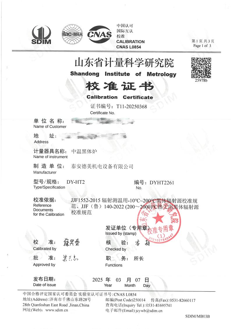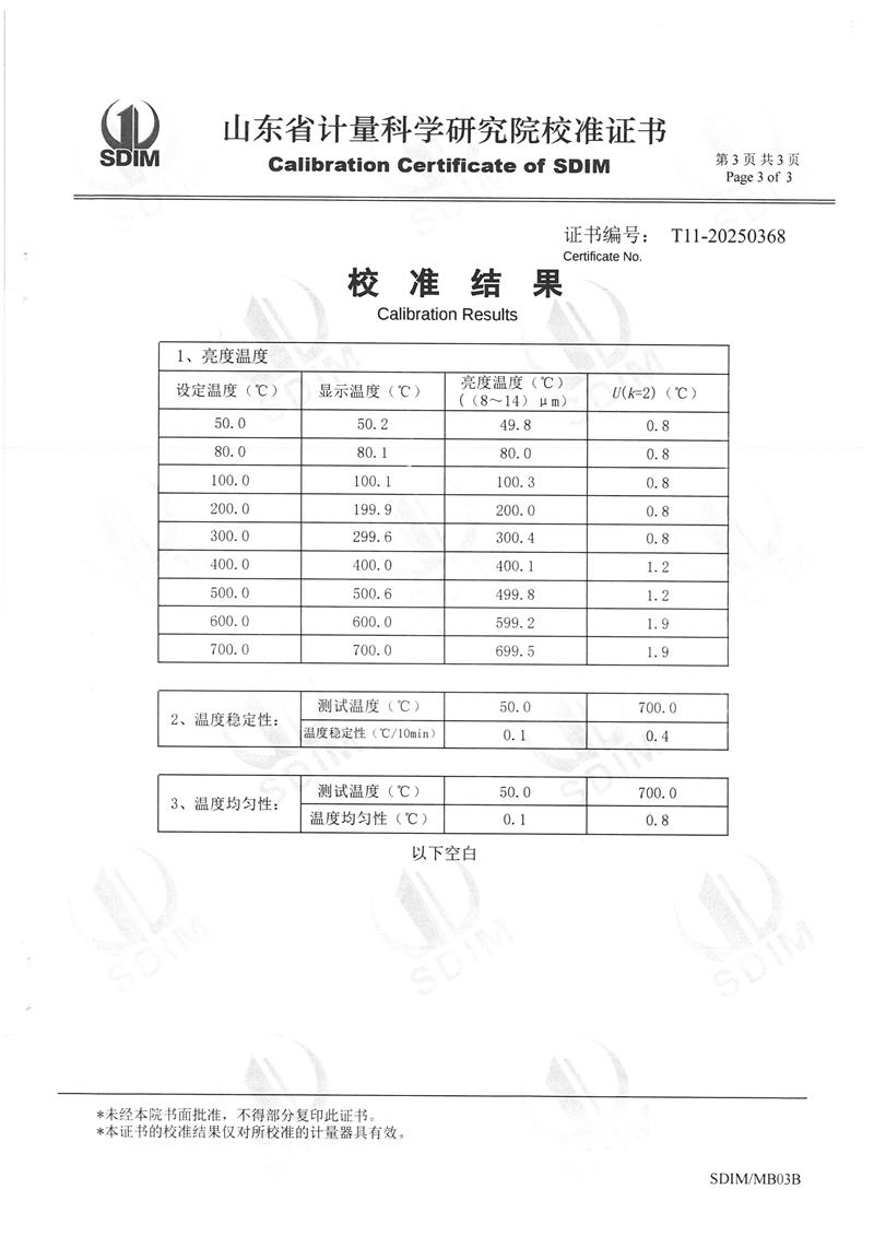中溫黑體爐(50~700℃)校準證書 2025-3-12 本文被閱讀 5387 次