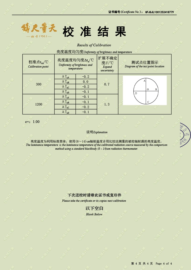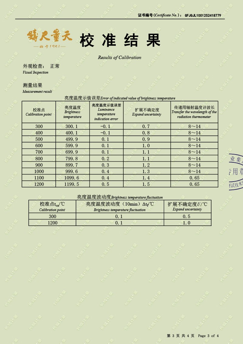 | 上一條:高精度制冷恒溫槽(-80~100℃)校準(zhǔn)證書 | 下一條:溫度數(shù)據(jù)采集儀校準(zhǔn)證書 |