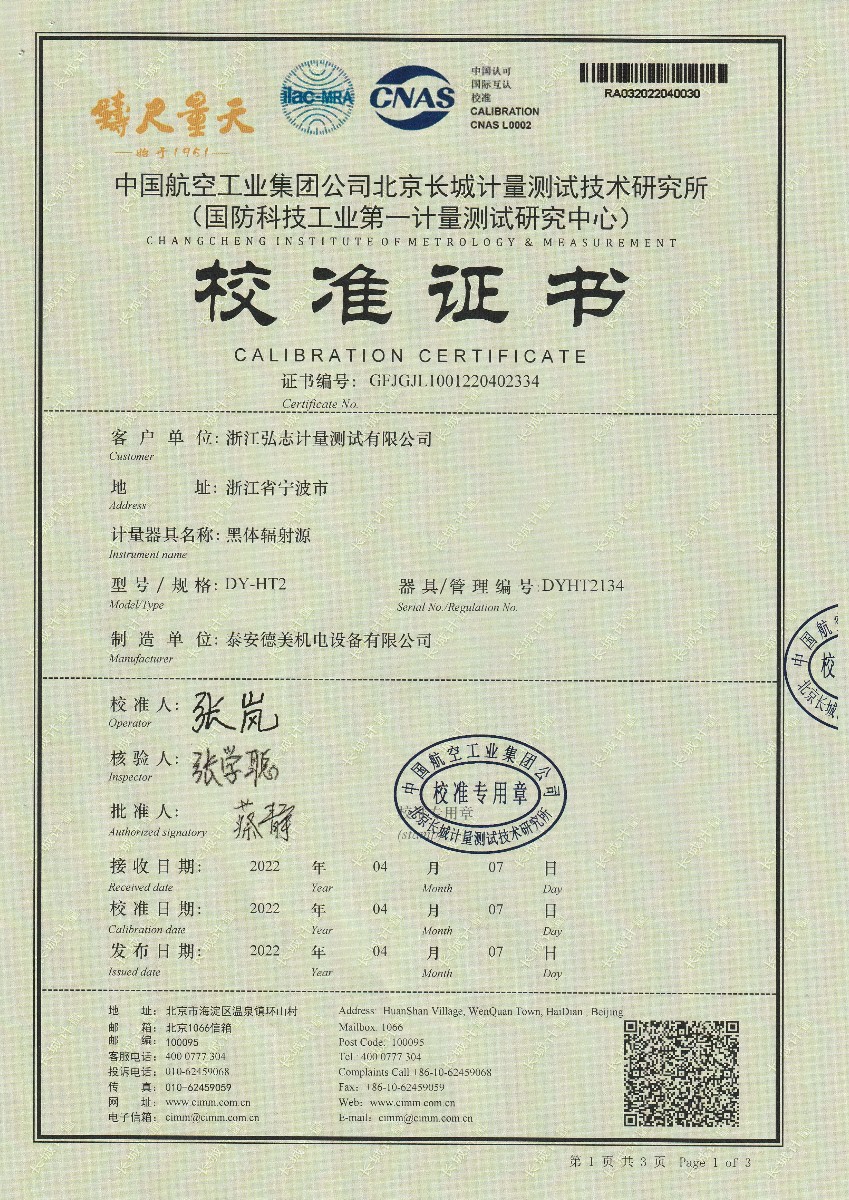 浙江弘志計量測試有限公司-黑體輻射源 2022-4-15 本文被閱讀 14745 次