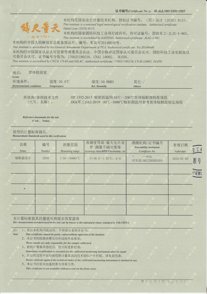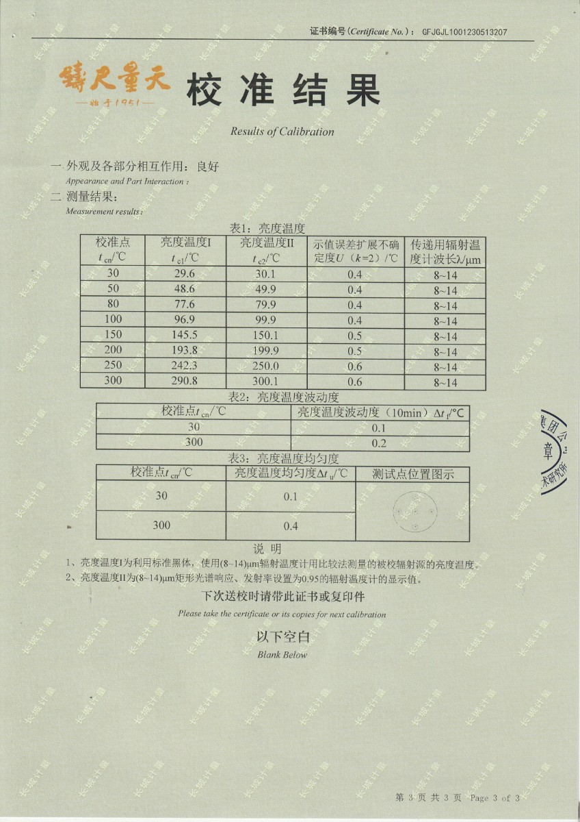 | 上一條:云南馳宏國際鍺業(yè)有限公司 面源黑體校準(zhǔn)證書 | 下一條:水三相點(diǎn)瓶凍制與保存裝置校準(zhǔn)證書 |