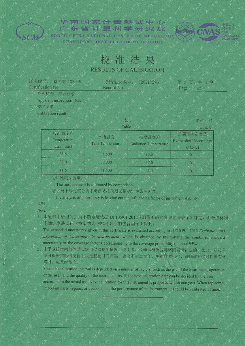 | 上一條:廣東省連平縣質(zhì)量技術(shù)監(jiān)督檢測(cè)所數(shù)字式溫度計(jì) | 下一條:水三相點(diǎn)瓶?jī)鲋婆c保存裝置校準(zhǔn)證書(shū) |