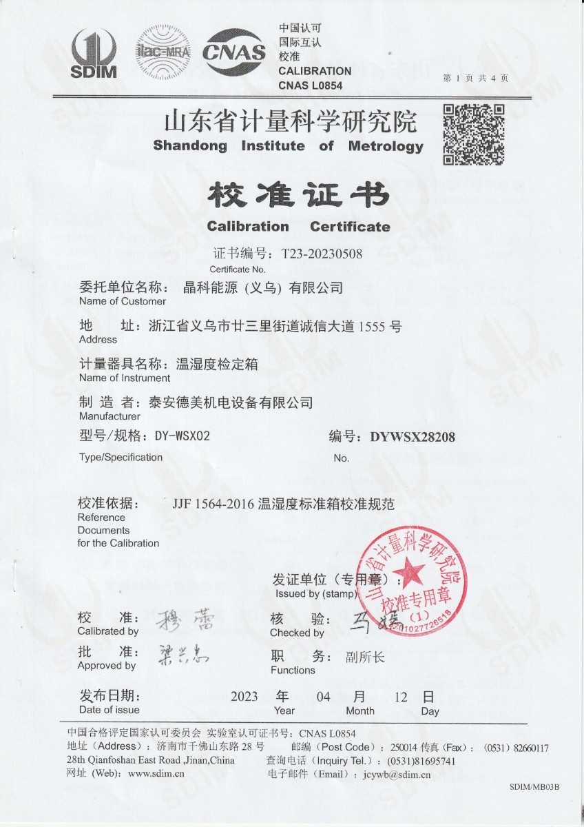 | 上一條:晶科能源(義烏)有限公司 精密露點(diǎn)儀(溫度)校準(zhǔn)證書 | 下一條:水三相點(diǎn)瓶?jī)鲋婆c保存裝置校準(zhǔn)證書 |