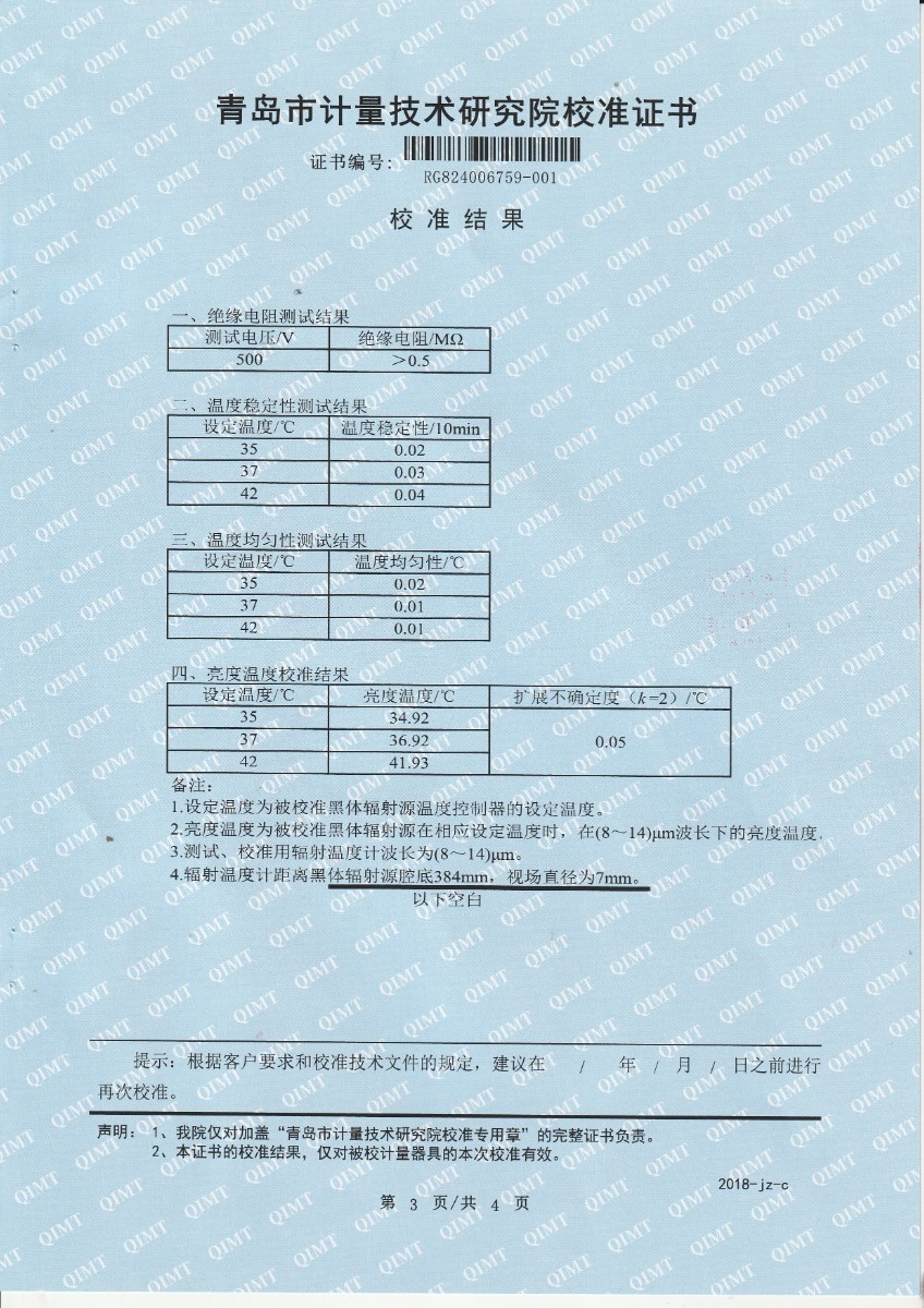 額溫計(jì)黑體空腔校準(zhǔn)證書 2024-4-16 本文被閱讀 7579 次