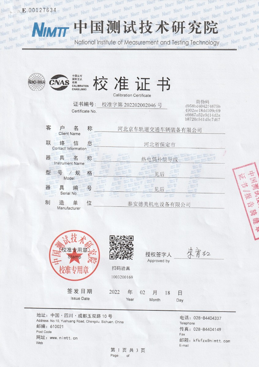 | 上一條:河北京車軌道交通車輛裝備有限公司-零點恒溫器 | 下一條:水三相點瓶凍制與保存裝置校準(zhǔn)證書 |