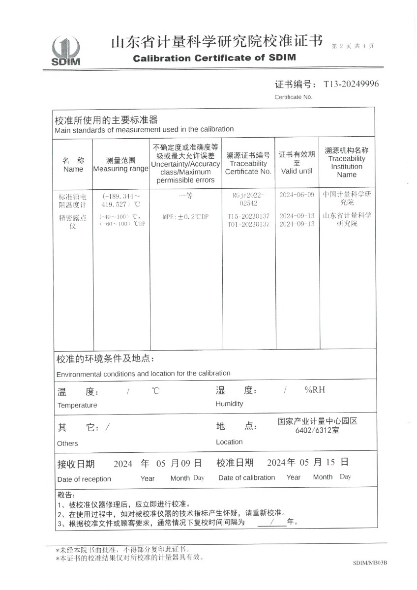 | 上一條:手持式高精度數(shù)字溫度計(jì)校準(zhǔn)證書 | 下一條:水三相點(diǎn)瓶?jī)鲋婆c保存裝置校準(zhǔn)證書 |