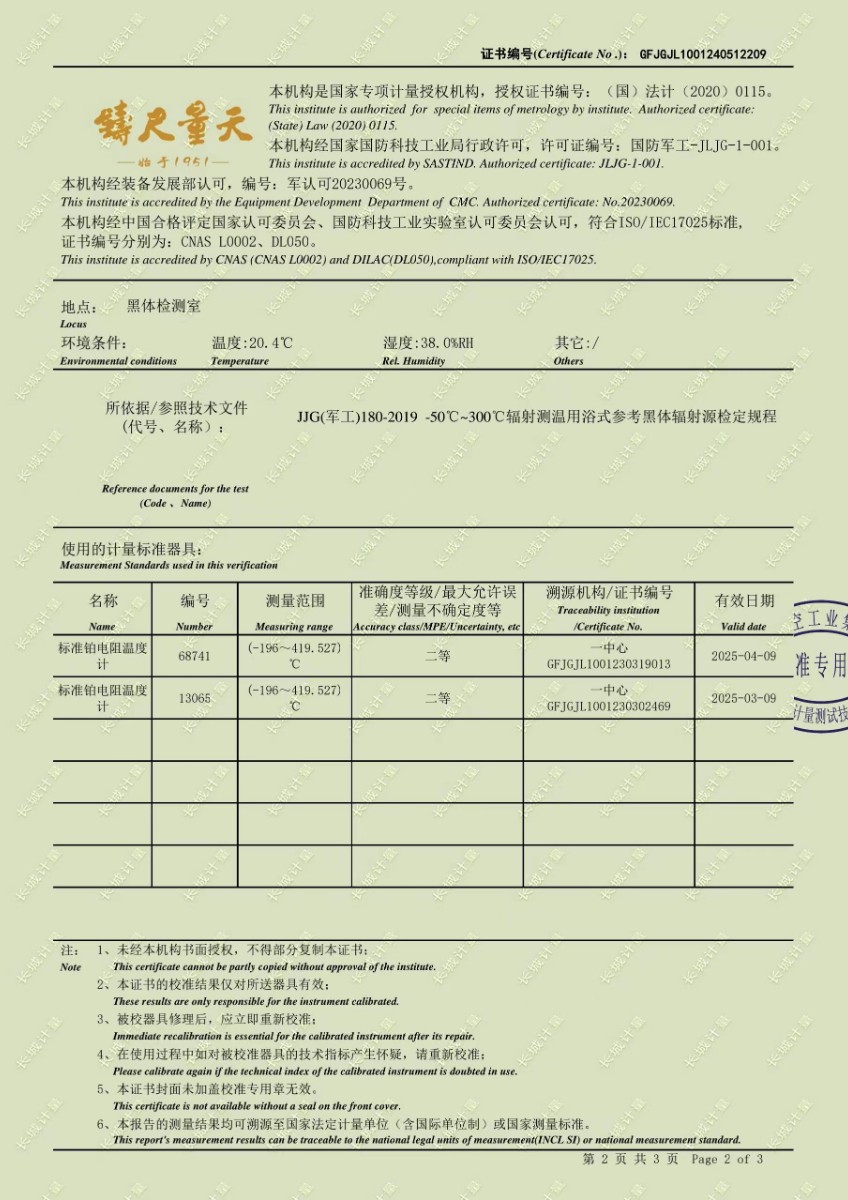 低溫浴式黑體輻射源校準證書 2024-5-31 本文被閱讀 8895 次