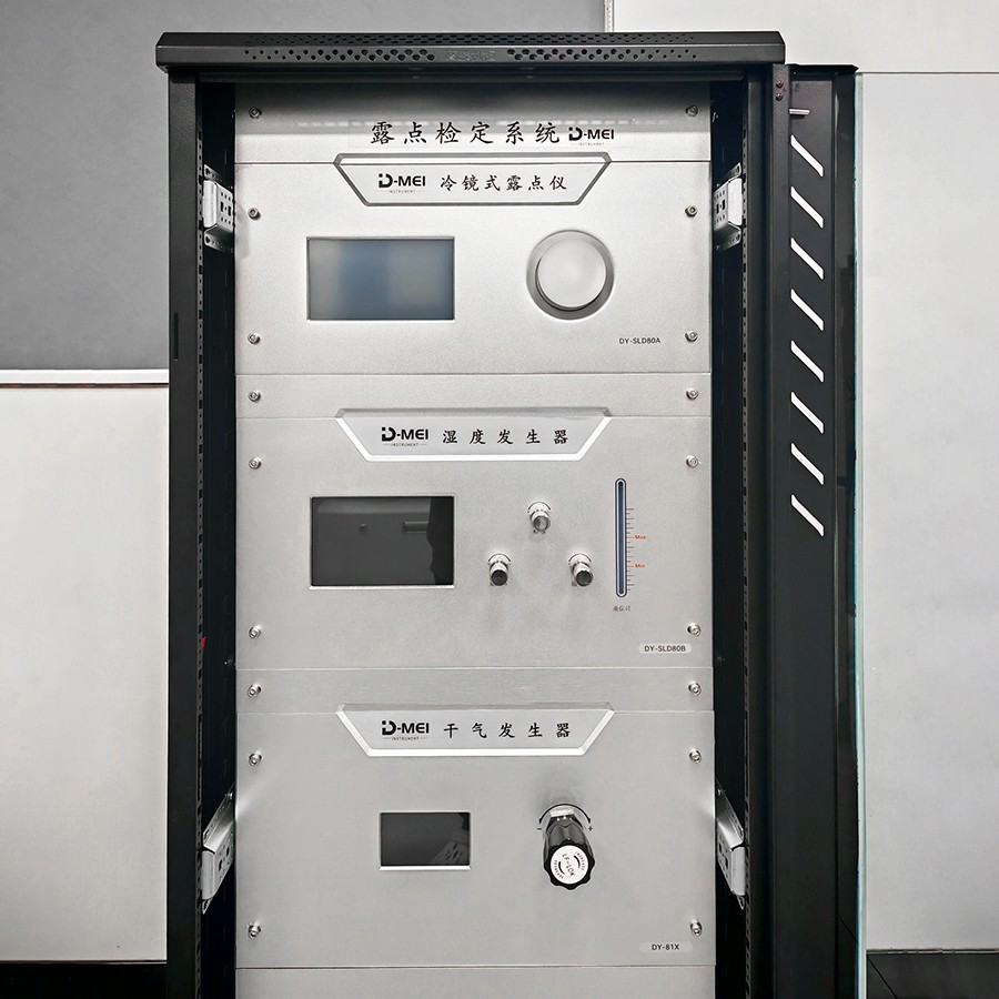 本套系統(tǒng)中露點(diǎn)發(fā)生器是根據(jù)分流法原理實(shí)現(xiàn)露點(diǎn)的調(diào)節(jié)。 是通過干濕氣流不同的配比關(guān)系可以得到不同露點(diǎn)溫度的氣體,該方法根據(jù)實(shí)際需要可以使用多級(jí)的分流搭配, 發(fā)生出想要的露點(diǎn)值氣源。我公司提供了可以使露點(diǎn)發(fā)生到低于-80℃的超級(jí)干燥機(jī)提供干燥氣源,因此可以做到-80℃到 20℃范圍內(nèi)的露點(diǎn)值任意調(diào)節(jié),而且可以實(shí)現(xiàn)全自控快速控制。